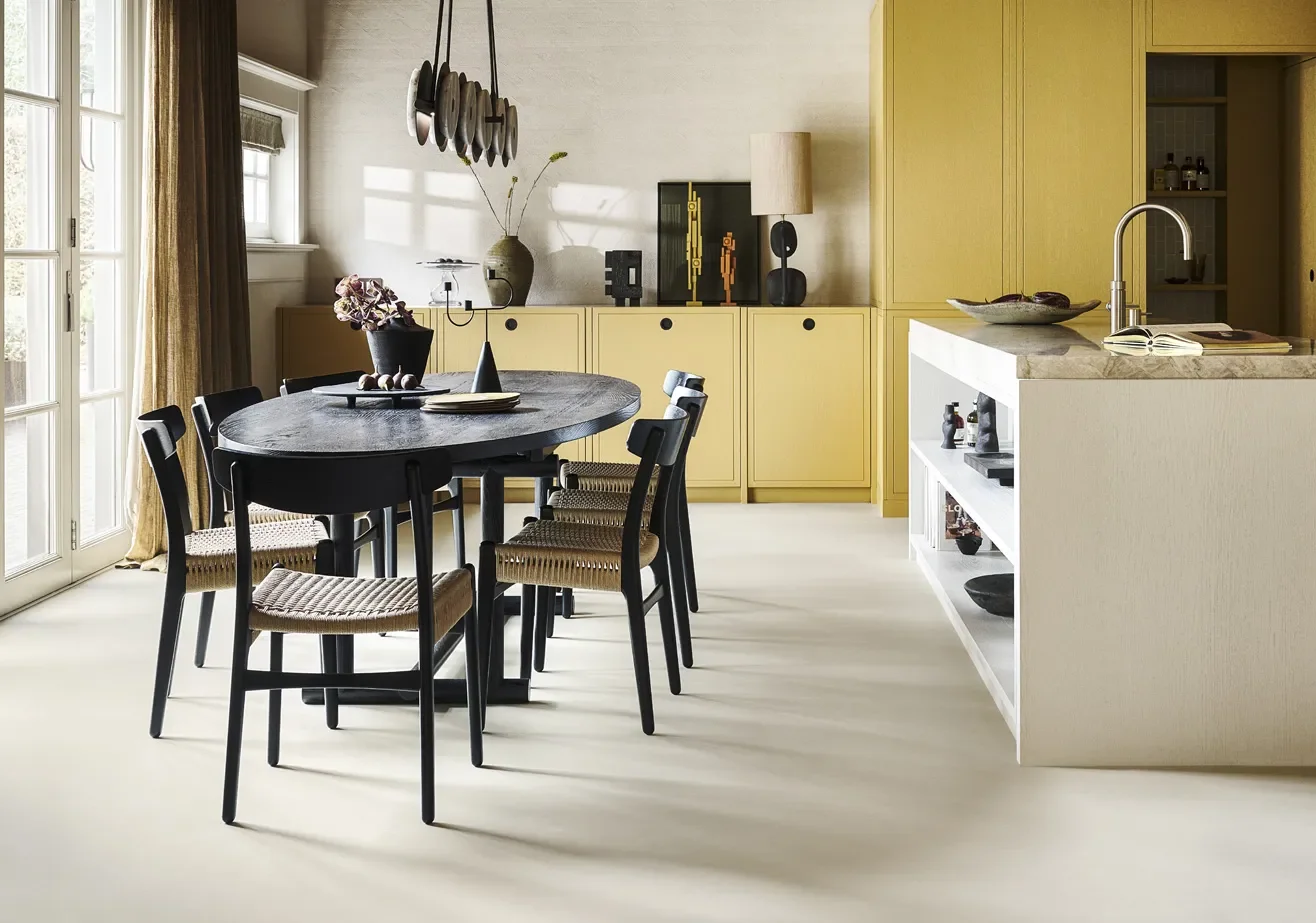 Marmoleum is gemaakt van natuurlijke grondstoffen, zoals lijnzaadolie, kurk, houtmeel en kalk. Dit maakt het niet alleen een duurzame keuze, maar ook een vloer die bestand is tegen de tand des tijds. De basis van het materiaal is niet alleen stevig, maar ook ademend, waardoor het bijdraagt aan een gezond binnenklimaat. Dankzij de natuurlijke ingrediënten heeft marmoleum ook een langere levensduur dan veel andere vloeren. Het gaat niet alleen jarenlang mee, maar is ook gemakkelijk te onderhouden zonder het gebruik van zware chemicaliën, wat weer bijdraagt aan het behoud van de kwaliteit.