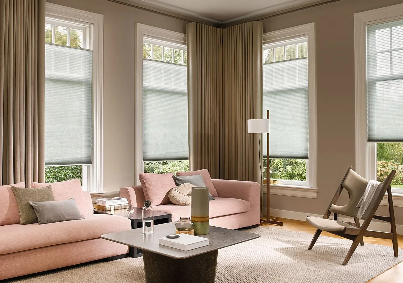 Raamdecoratie kan meer dan je denkt. Duette® Shades bijvoorbeeld hebben een honingraatstructuur die lucht vasthoudt tussen de lagen stof. Die stilstaande lucht werkt isolerend: in de winter blijft de warmte binnen, in de zomer houdt ze juist de hitte buiten. Combineer ze met mooie overgordijnen voor een extra laag comfort en een rijke uitstraling. Zo maak je van een praktische oplossing een stijlvol statement.
