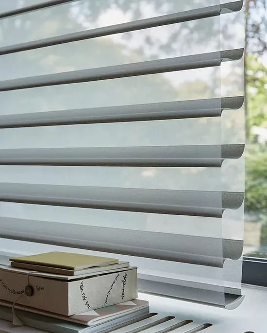 Op maat gemaakte Silhouette® shades van Luxaflex® nemen het hardste licht op en transformeren het in zacht diffuus licht. Hierdoor zijn ze ideaal voor iedereen die een elegante lichtinval wenst, terwijl de privacy gewaarborgd blijft. Bij de Silhouette® Shades kies je zelf of je voor 50 mm of 75 mm lamelbreedte gaat, zodat ze perfect passen bij zowel kleine, smalle ramen als grote, brede vensters.
