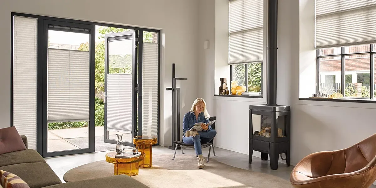 Vouwgordijnen van Luxaflex® worden op maat gemaakt uit hoogwaardige stoffen in rijke kleuren en bieden extra isolatie en geluidsdemping. Een perfecte match met jouw interieur. De zachte, gevouwen stof creëert een uitnodigende sfeer en biedt tegelijkertijd de mogelijkheid voor volledige verduistering, waardoor ze perfect zijn voor slaapkamers en geschikt voor elke ruimte in huis.